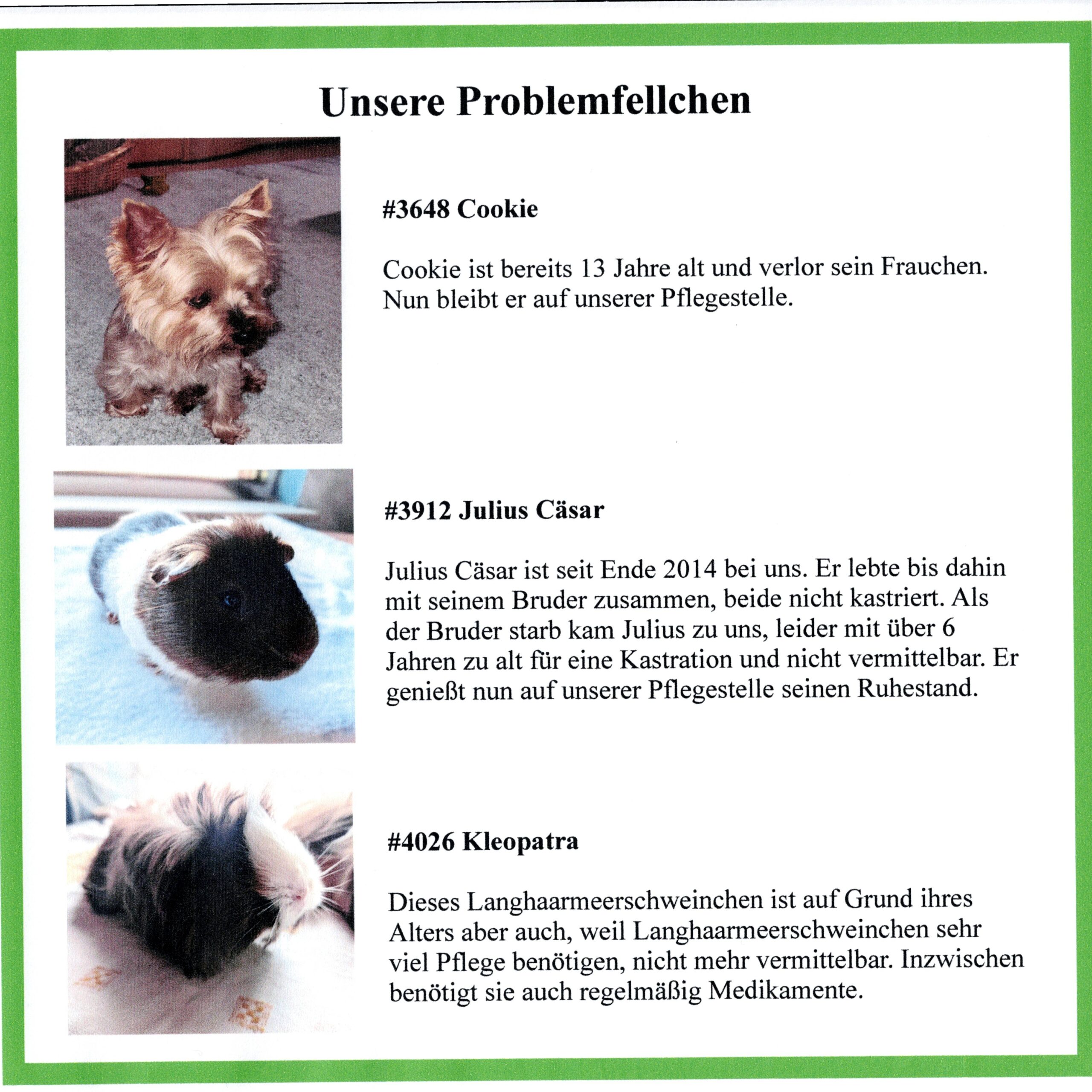 Wenn Sie aktiv in unserem Verein tätig sein wollen, freut uns das natürlich sehr. Das Argument „dafür hab ich keine Zeit“ entfällt bei uns. Fast alle unsere aktiven Mitglieder sind berufstätig, es erwartet Sie hier kein Vollzeitjob. Drei bis vier Veranstaltungen im Jahr, bei denen Kaffee, Kuchen, Waffeln usw. verkauft werden und die neben dem Verkauf und dem Auf- und Abbau auch sehr viel Spaß bedeuten. Vielleicht möchten Sie eine Pflegestelle zur Verfügung stellen und haben schon Erfahrung mit der Haltung von Katzen, Kaninchen, Hamstern ….? Rufen Sie uns einfach an: 015151944938